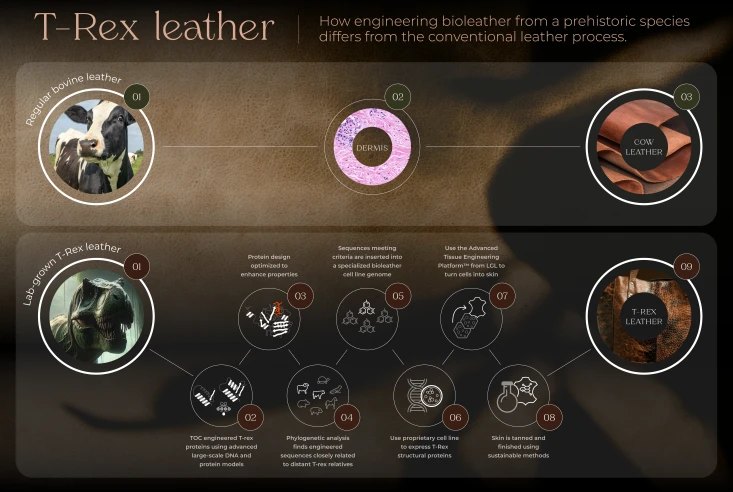 Lab-Grown Leather, based in Newcastle, teamed up with The Organoid Company to grow extinct hides using dinosaur DNA.