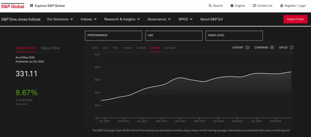 Over the last five years, home prices nationwide have grown at an annualized rate of 8.67 percent, according to the S&P CoreLogic Case-Shiller Home Price Index.